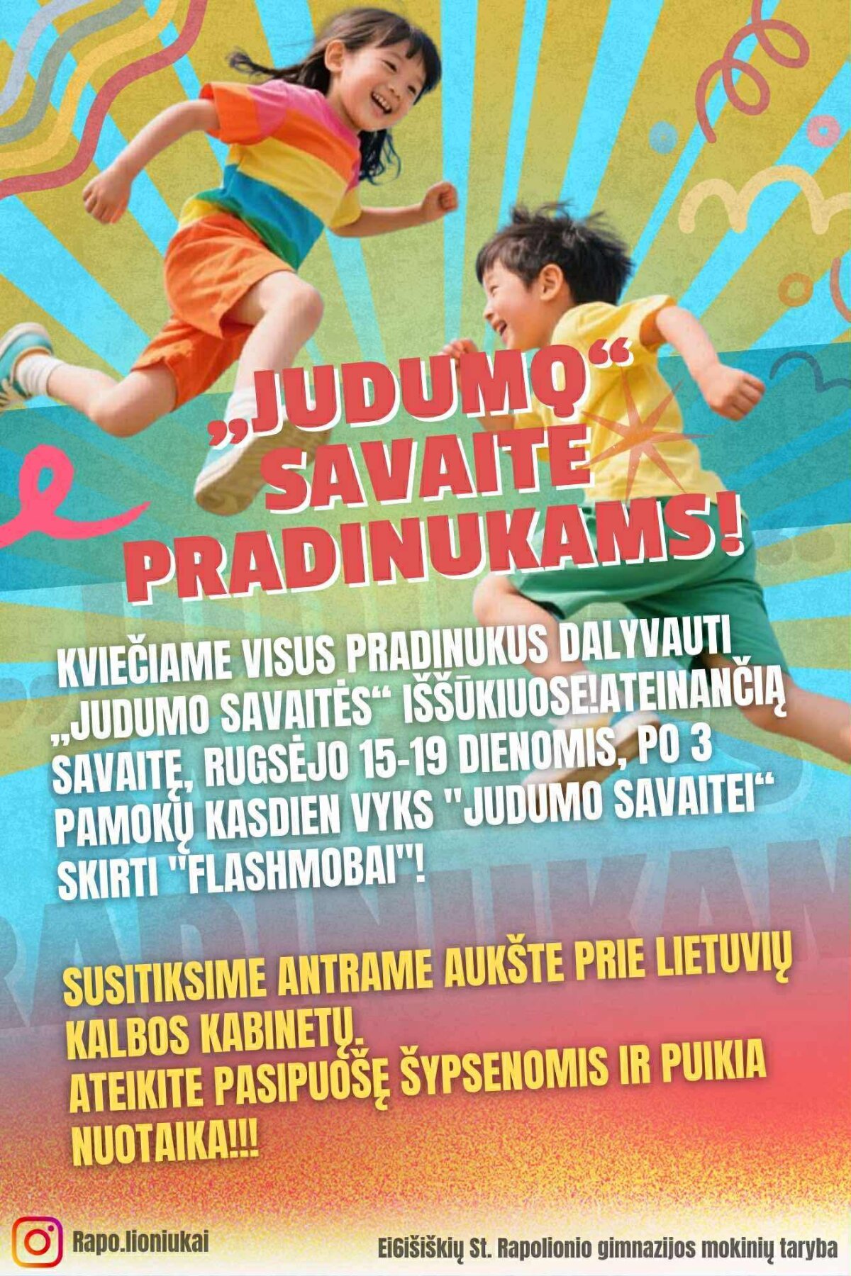 Judumo savaitė mūsų gimnazijoje organizuojama jau ne pirmą kartą. Džiaugiamės, kad ši graži tradicija tęsiasi ir skatina aktyvų bei sveiką poilsį!
