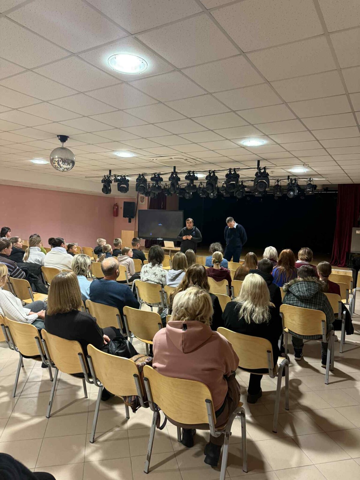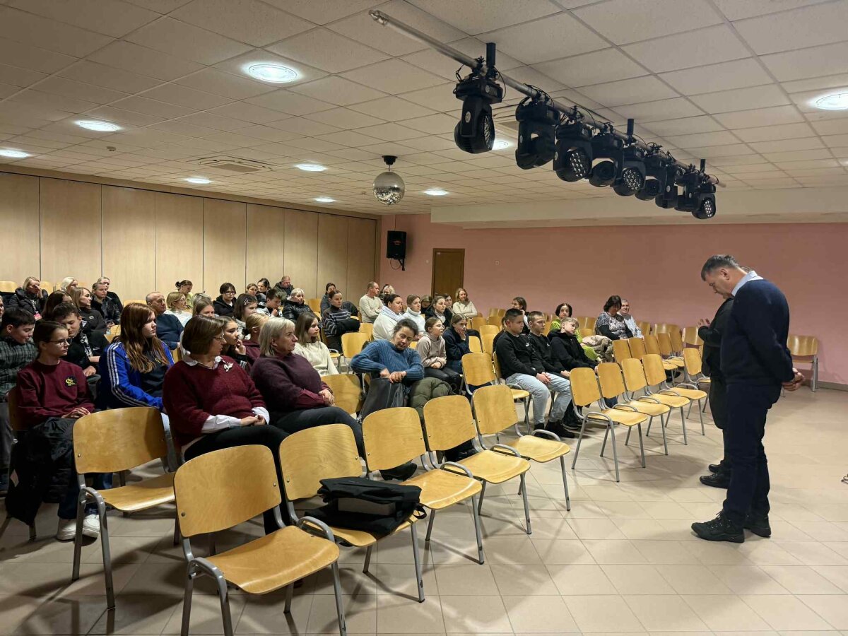 Lektoriai su gimnazijos bendruomene atvirai kalbėjo apie priklausomybes kaip visą žmogų ir jo šeimą paliečiančią problemą bei ragino tėvus ir vaikus išdrįsti ieškoti pagalbos. Aktyviausi diskusijos dalyviai buvo paskatinti simbolinėmis dovanomis su „Kurianti visuomenė“ atributika.