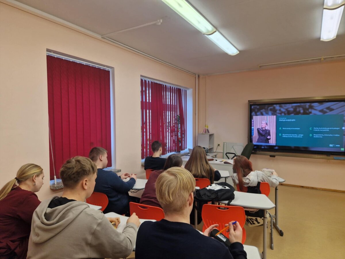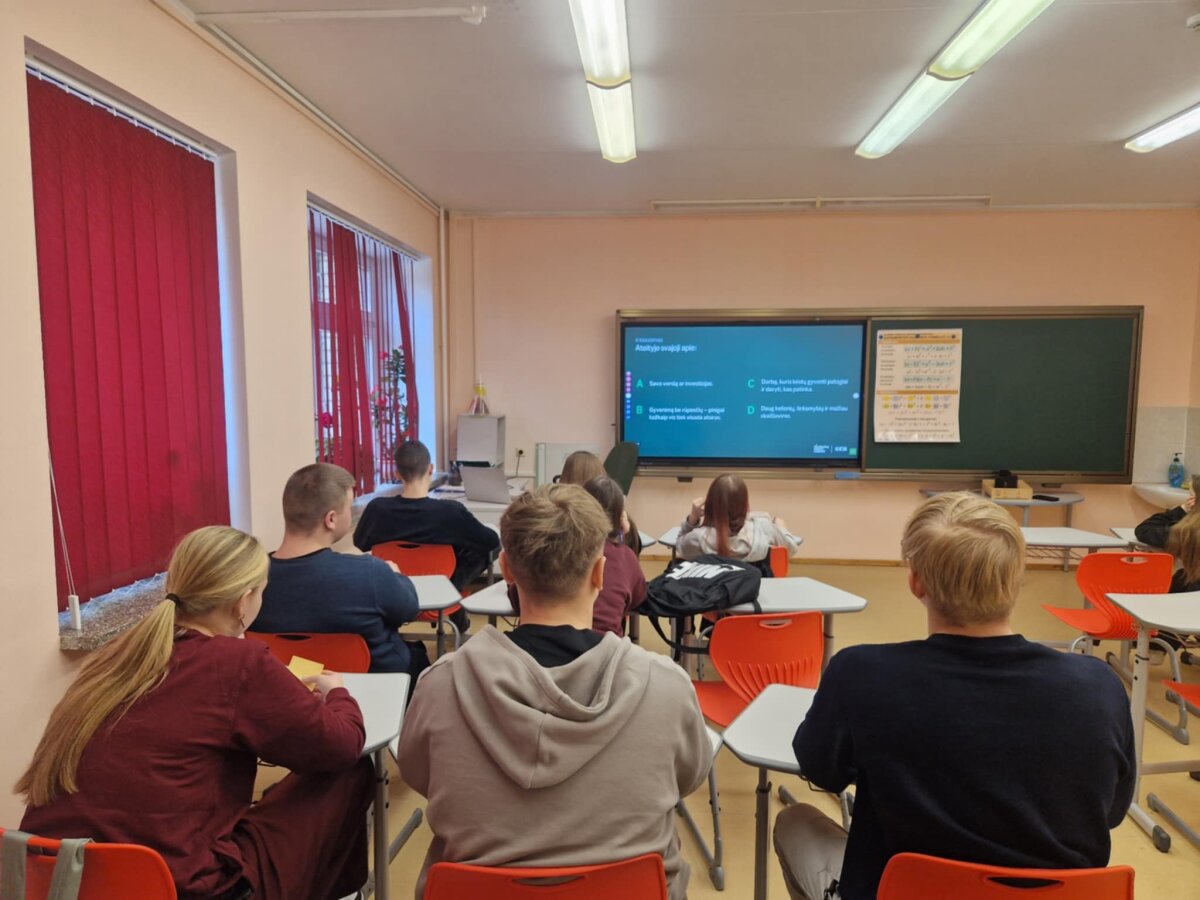 Mūsų gimnazijos IG klasės mokiniai dalyvavo SEB banko organizuotoje tiesioginėje nacionalinėje pamokoje. Pamokos tema - „Pinigai seniai nebėra tabu. Pakalbėkime apie tai“. Pamokos metu aptarta, kaip keičiasi požiūris į pinigus, kodėl svarbu apie juos kalbėtis šeimoje ir kaip planuoti savo biudžetą skaitmeniniame amžiuje. Buvo aptariamas ir biudžeto sudarymas. Gimnazistai mokėsi taikyti „auksines“ taisykles, pavyzdžiui, 50-30-20 taisyklę (50% pajamų – poreikiams, 30% – norams, 20% – taupymui ar investavimui). Išmoko atskirti emocinį pirkimą nuo racionalaus ir suprato, kaip skaitmeniniai pinigai (kortelės, telefonai) formuoja mūsų pirkimo įpročius, palygino su atsiskaitymu grynaisiais. Susipažino, kaip „įdarbinti“ pinigus, kad jie laikui bėgant nenuvertėtų dėl infliacijos.