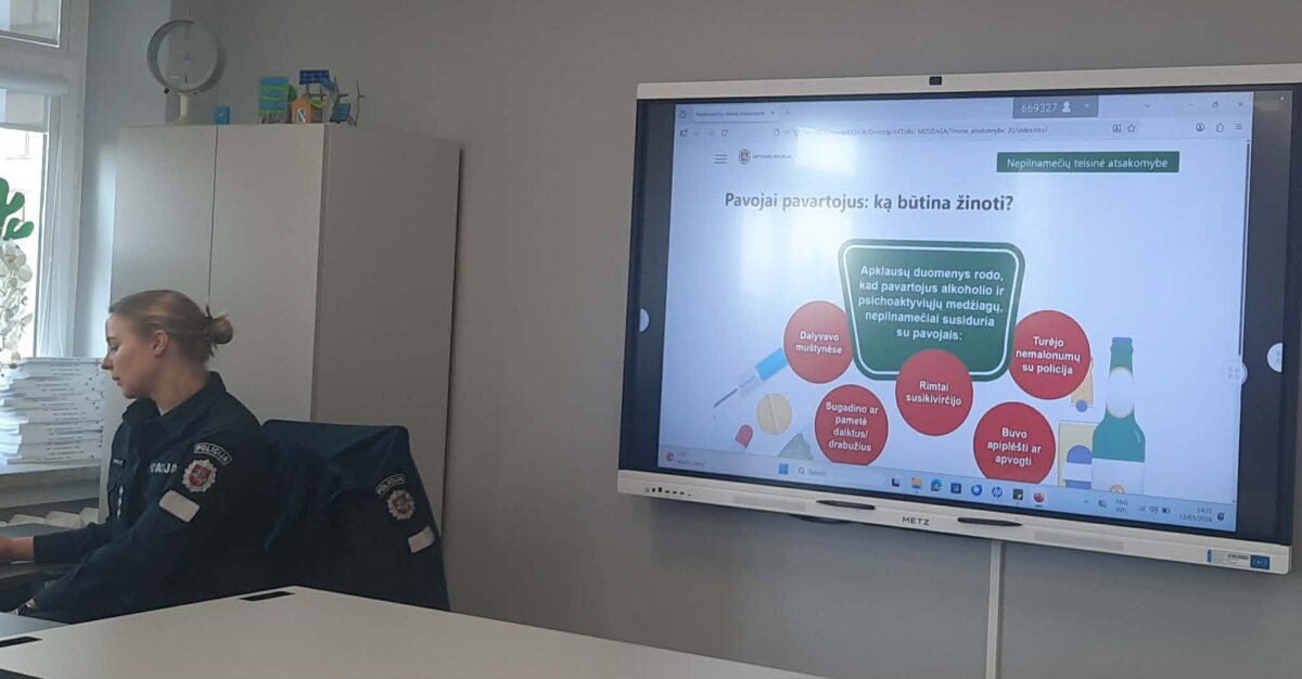Gyvenimo įgūdžių pamokos su bendruomenės pareigūne apie paauglių teisinę atsakomybę