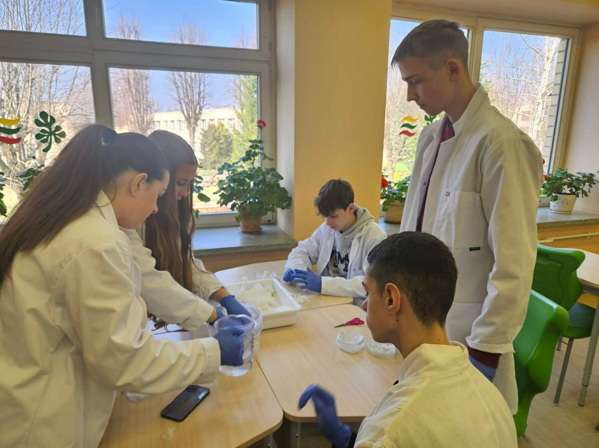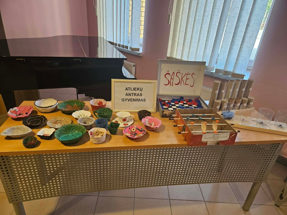 Ne mažiau įdomios buvo ir kūrybinės dirbtuvės, kuriose mokiniai turėjo galimybę išbandyti tvarumo principus praktiškai. Iš panaudotų popierinių rankšluosčių jie gamino dėkliukus puodukams. Ši veikla ne tik skatino kūrybiškumą, bet ir priminė, kad net ir iš, atrodytų, nebereikalingų medžiagų galima sukurti naudingus ir estetiškus daiktus.