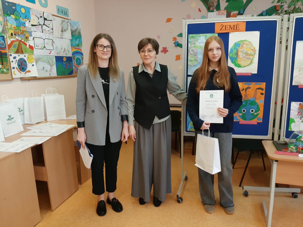 Vertinimo komisija jos darbui skyrė nominaciją „Saulėčiausia nuotaika“. Saulės ir spalvų netrūko ir kitų mokinių darbuose. Vaikams tikrai rūpi mūsų Žemės likimas.