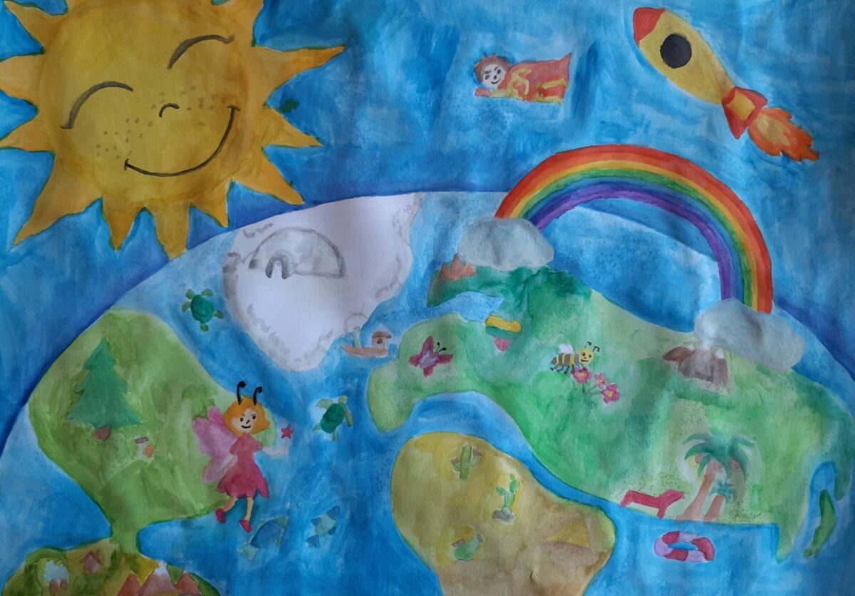 „Mano piešinyje nėra sienų ir tvorų, nes Žemė yra mūsų bendras kiemas. Nesvarbu, kur gyvename, mes visi dalijamės tą pačia saule ir tuo pačiu dangumi. Šis spalvotas pasaulis yra mūsų didžiausias turtas, kurį turime saugoti kartu, kad vandenynai būtų pilni gyvybės, o pievose dūgztų bitės. Tai mano svajonė apie planetą, kurioje vietos ir meilės užtenka kiekvienam. Leiskite mūsų Žemei visada išlikti tokiai spalvotai, kokią ją matome vaiko akimis. Kiekvienas medis, kiekviena bitė ir kiekvienas vaikas yra šio pasaulio dalis, ir kartu mes galime sukurti dar daugiau stebuklų po mūsų bendru dangumi“, - pristatydama savo piešinį kalbėjo mūsų gimnazijos septintokė Marta Kulpovič.
