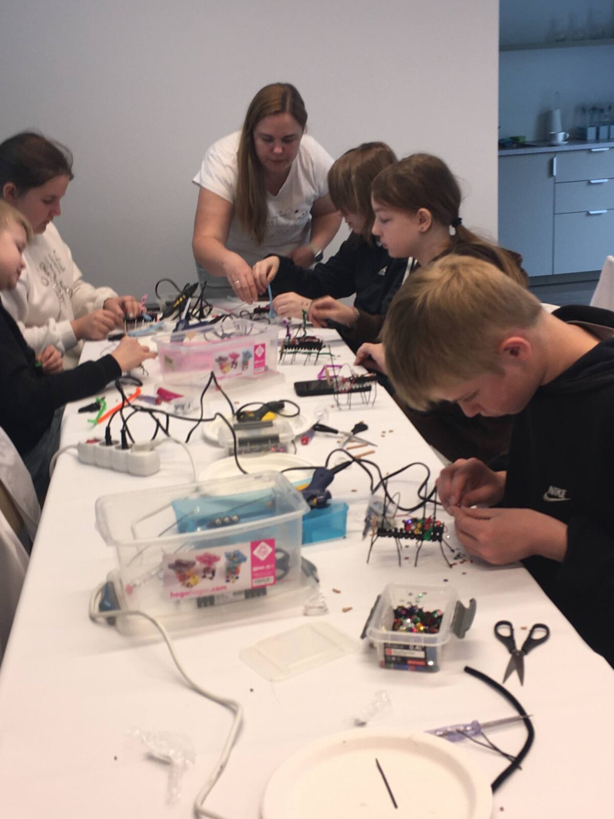 6b klasės mokiniai edukacijos ,,Pirmoji pažintis su robotais. Kuriame robotą“ metu gilinosi į pirmuosius robotizuotus išradimus literatūroje ir kultūroje. Jie sužinojo, kaip atrodė pirmieji robotai – žaislai, kaip jie veikė. Praktinio užsiėmimo metu kiekvienas mokinys konstravo savo roboto modelį, jungė jį su energijos šaltiniu ir varikliu. Tai tikrai įtraukianti veikla, skatinusi mokinius mąstyti kūrybiškai ir praktiškai.