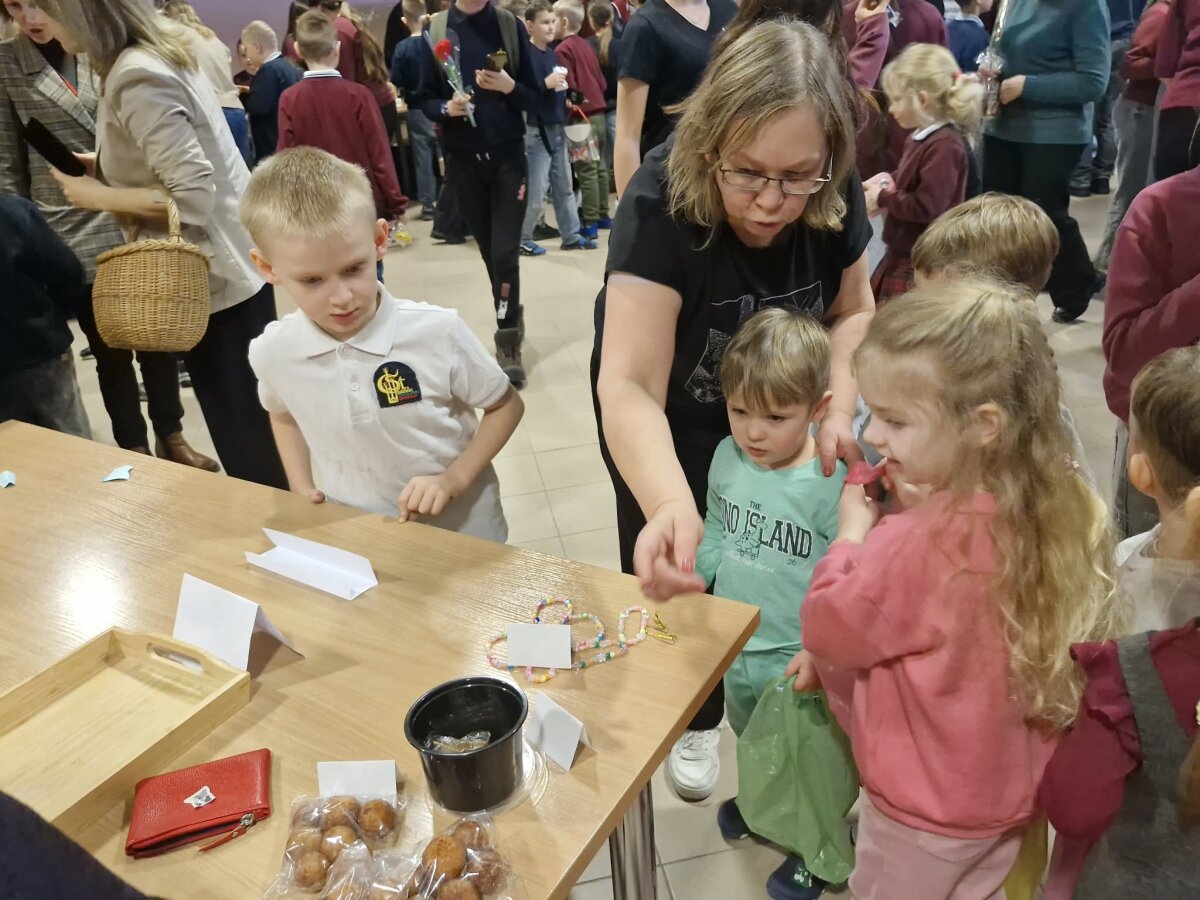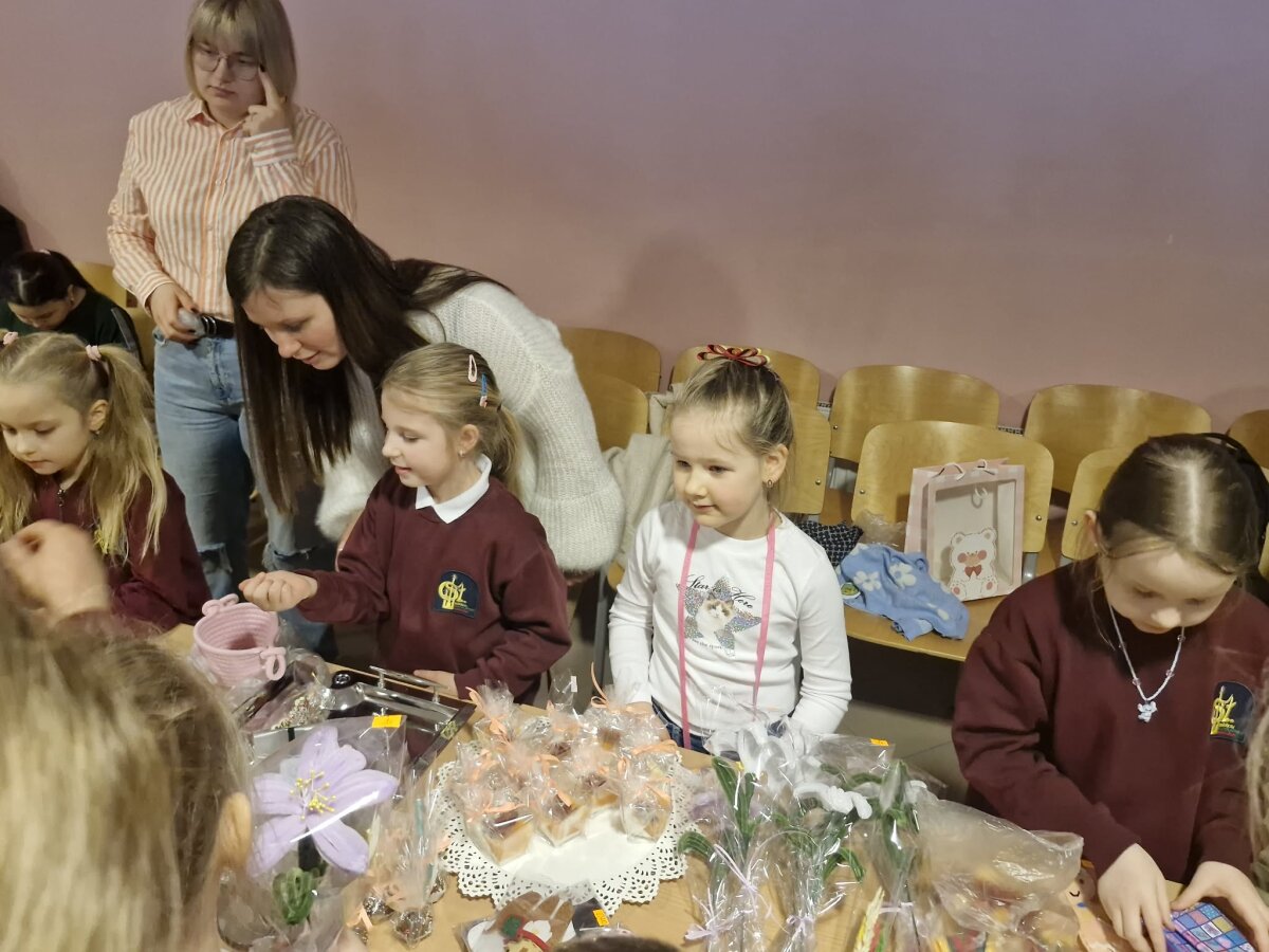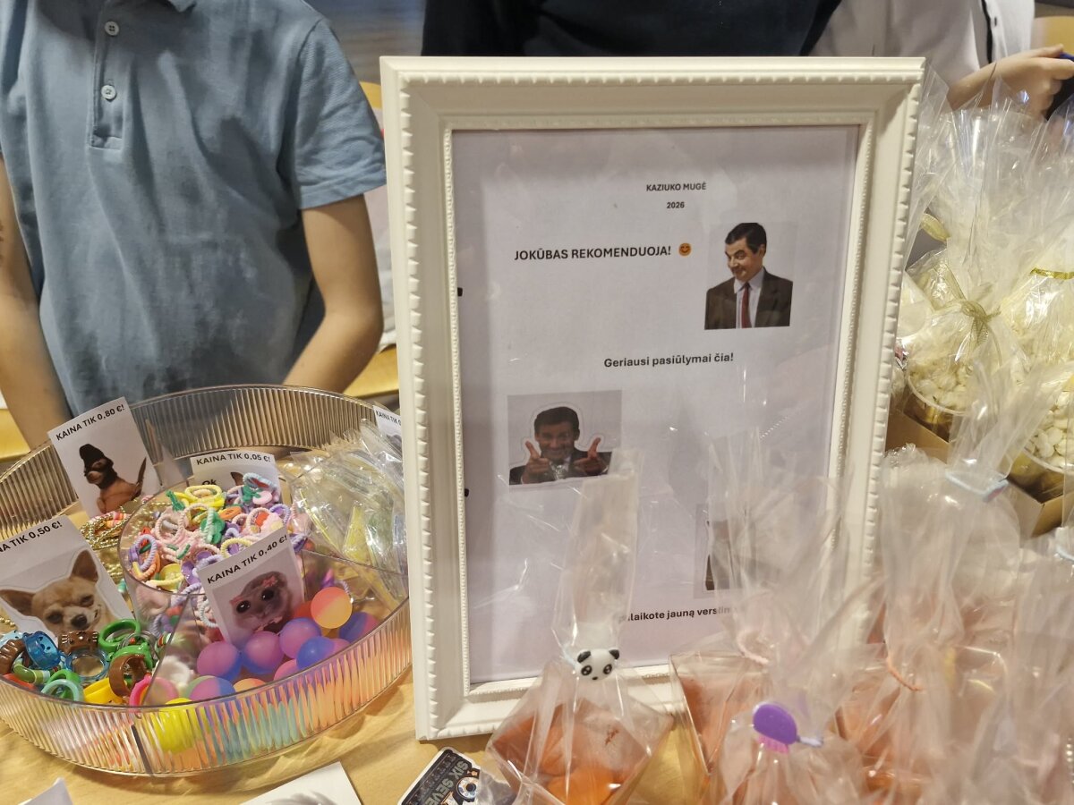 Kaziuko mugė - vienas seniausių, ryškiausių ir mėgstamiausių tradicinių renginių Lietuvoje. Šiandien, kovo 4-ąją, mugė šurmuliavo ir mūsų gimnazijos aktų salėje. Verbos, įvairūs papuošalai, kepiniai ir kiti pradinukų darbeliai gražiai sugulę ant stalų laukė pirkėjų. Vaikai pirko, pardavinėjo, keitėsi, dovanojo ir vieni kitiems dėkojo. Mugėje dalyvavo ir tėveliai, seneliai. Vyravo pavasariška šventinė nuotaika.