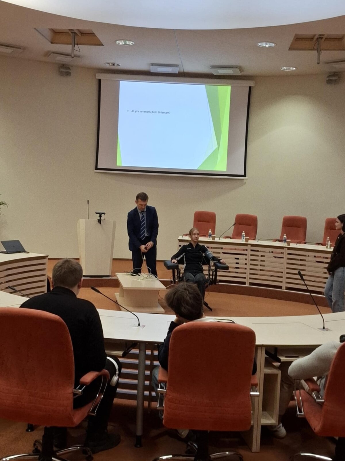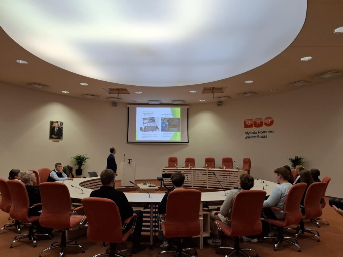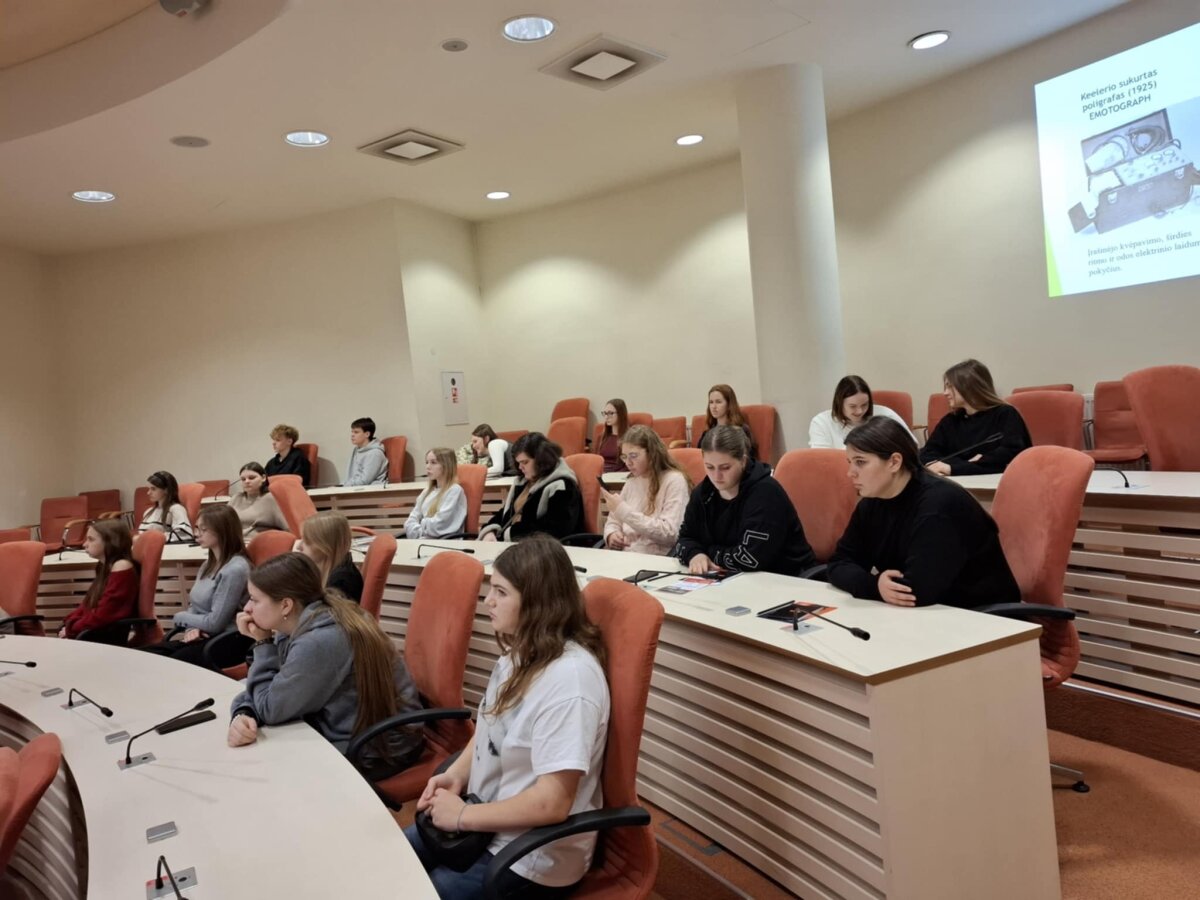 Lapkričio 12 dieną mūsų gimnazistai lankėsi Mykolo Romerio universiteto (MRU) atvirų durų dienoje Vilniuje. Išvykos tikslas – susipažinti su universitetu, studijų programomis bei studentų gyvenimu. Atvykusius gimnazistus pasitiko universiteto atstovai, kurie papasakojo MRU istoriją, kalbėjo apie fakultetus ir įvairias studijų kryptis: teisę, viešąjį valdymą, psichologiją, komunikaciją, informatiką, verslo ir ekonomikos studijas. Jaunuoliai turėjo galimybę dalyvauti paskaitose, diskusijose, kur dėstytojai bei studentai dalijosi savo patirtimi ir patarimais, kaip pasirinkti tinkamą studijų kryptį. Ypač visiems įdomi buvo paskaita apie melo detektoriaus panaudojimą nusikaltimų tyrimuose. Aplankėme ir eksperimentinę psichologijos laboratoriją. Visi turėjo progą užduoti klausimus apie stojimo tvarką, mainų programas bei karjeros galimybes baigus universitetą. Gimnazistai grįžo pilni įspūdžių ir naujų idėjų kuriant ateities planus.