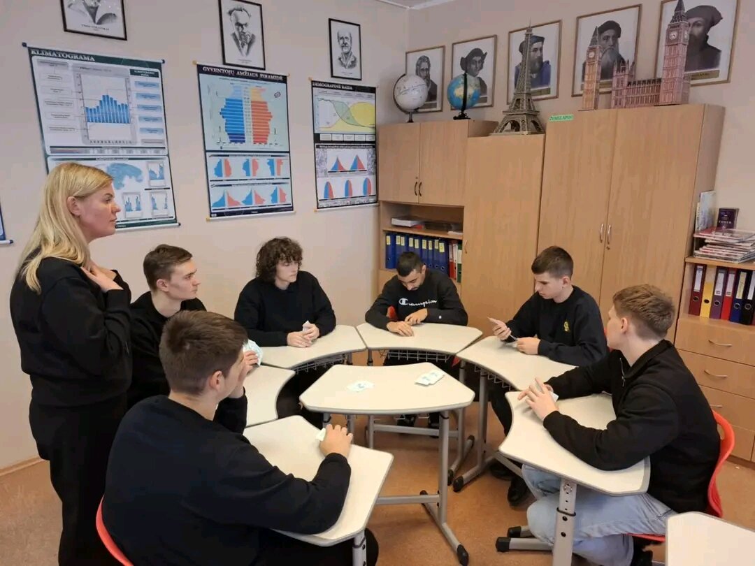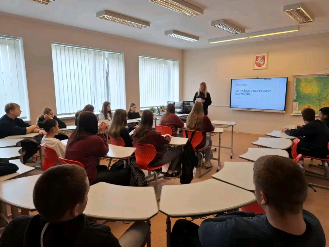 Vienas įdomiausių užsiėmimų - protmūšis „Profesijų pasaulyje“, kuriame dalyvavo IG klasės mokiniai. Jie, susiskirstę į komandas, varžėsi atsakinėdami į klausimus apie skirtingas profesijas, reikalingas kompetencijas ir įdomius faktus apie įvairius darbus. Tokia veikla ne tik praplečia žinias apie profesijų įvairovę, bet ir lavina kritinį mąstymą, loginį samprotavimą bei komandinio darbo įgūdžius. Žaidimai, protmūšiai, ir diskusijos padeda atrasti, kas iš tiesų įkvepia ir kokia kryptimi norisi judėti ateityje.