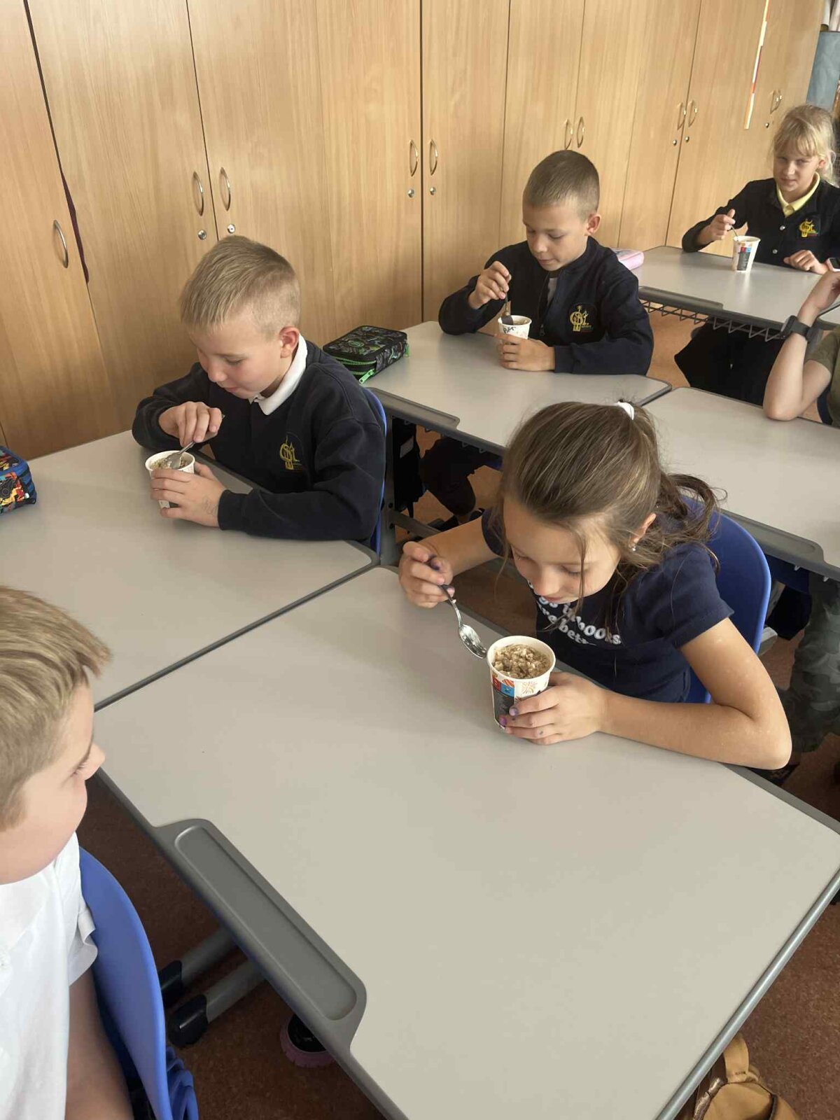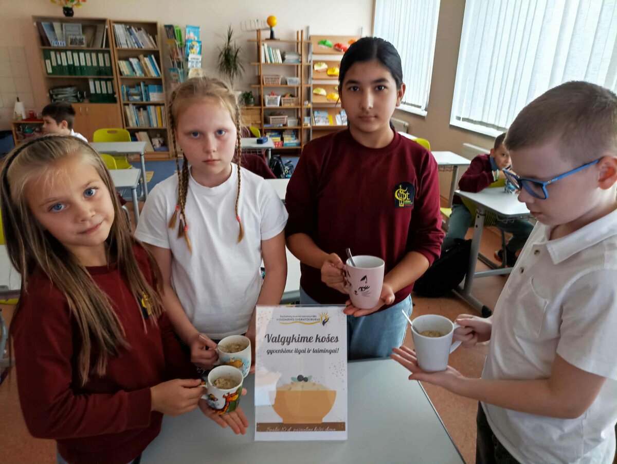 Pradinukai susipažino su košės nauda organizmui, mokėsi atskirti sveikus produktus nuo mažiau vertingų užkandžių. Vaikai diskutavo, dalijosi patirtimi, kokias košes mėgsta valgyti namuose.
